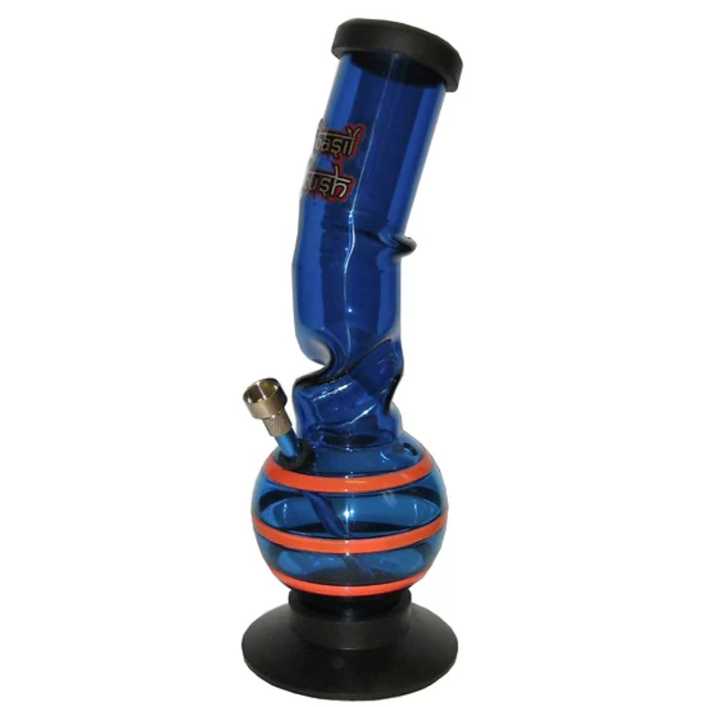 A 30 cm bubble bong with rubber base and mouthpiece. It has a removable metal down tube with coloured bands around the bubble making this an easy piece to grip. An added bonus is the ice twist allowing the user to add ice to the neck of the bong to help cool the smoke.
