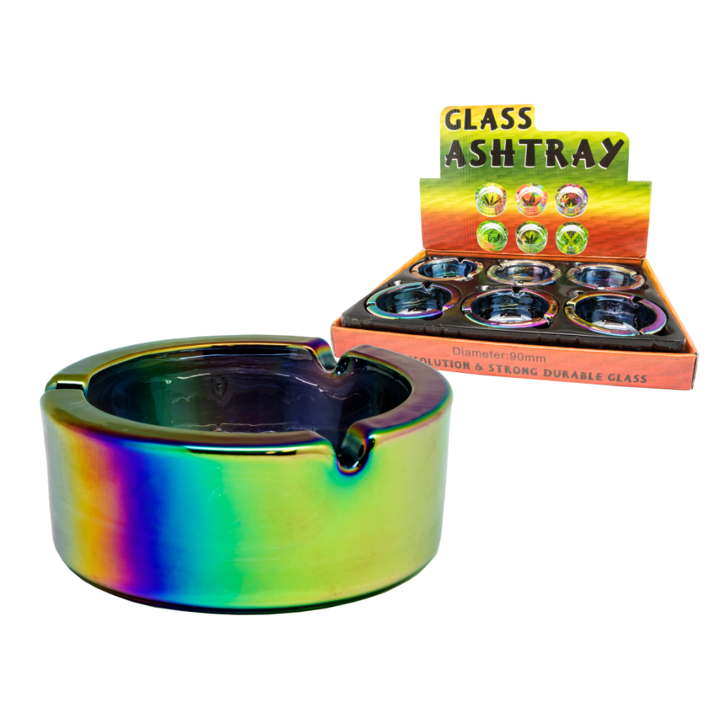 A lovely heavy glass oil slick ashtray. Would make a great gift.